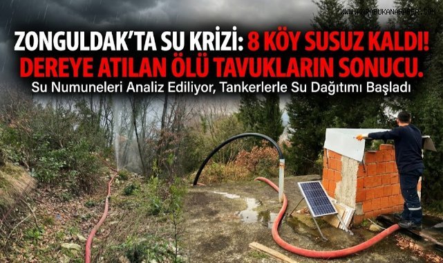 Zonguldak’ın Alaplı ilçesinde dere yatağına atılan ölü tavuklar nedeniyle halk sağlığını korumak amacıyla 8 köyün içme suyu geçici olarak kesildi.