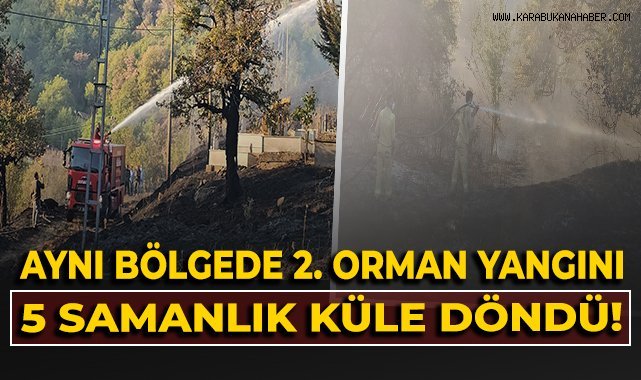 Kastamonu’nun Şenpazar ilçesinde aynı bölgede ikinci kez çıkan orman yangını, ekiplerin müdahalesiyle kontrol altına alındı. Bölgede bulunan 5 ahşap samanlık yandı.