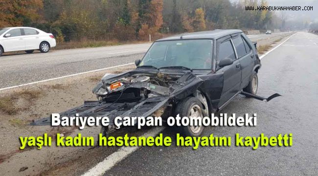 Karabük'ün Safranbolu ilçesinde otomobilin sürücüsünün kontrolünden çıkarak bariyere çapması sonucu yaralanan yaşlı kadın kaldırıldığı hastanede hayatını kaybetti.