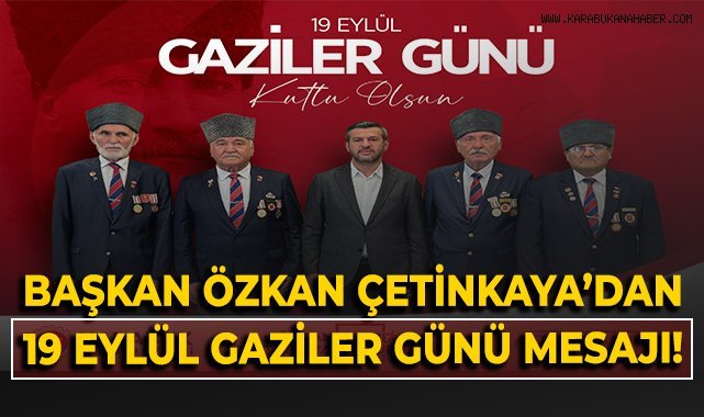 Karabük Belediye Başkanı Özkan Çetinkaya, 19 Eylül Gaziler Günü dolayısıyla yayımladığı mesajda, gazilerin bağımsızlık mücadelesindeki onurlu duruşlarının millet için ilham kaynağı olduğunu vurguladı. Çetinkaya, şehitleri ve ebediyete irtihal eden gazileri rahmetle andığını belirterek, hayatta olan tüm gazilere sağlıklı ve huzurlu bir ömür diledi.