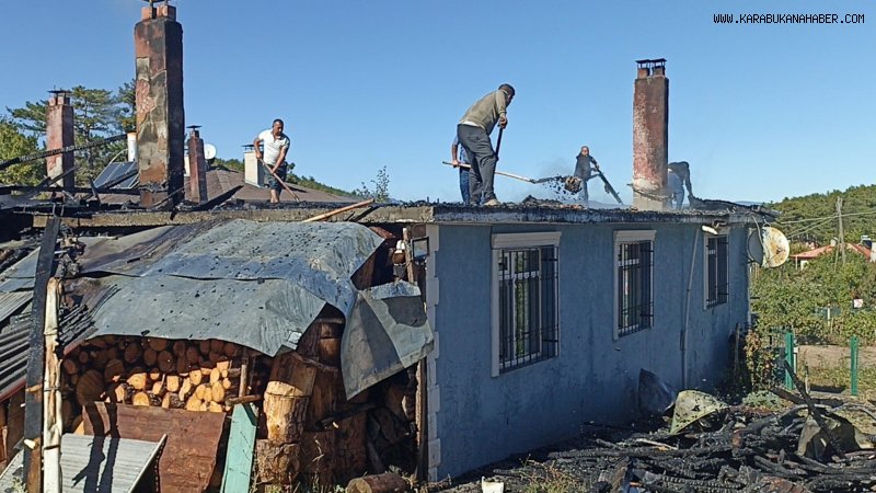Çatısı alevlere teslim olan evi küle dönmekten ekipler kurtardı