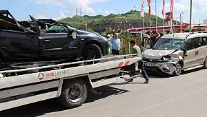 Takla atarak karşı şeritten gelen aracın üzerine uçtu