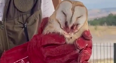 Bitkin halde bulunan peçeli baykuş tedavi edildi