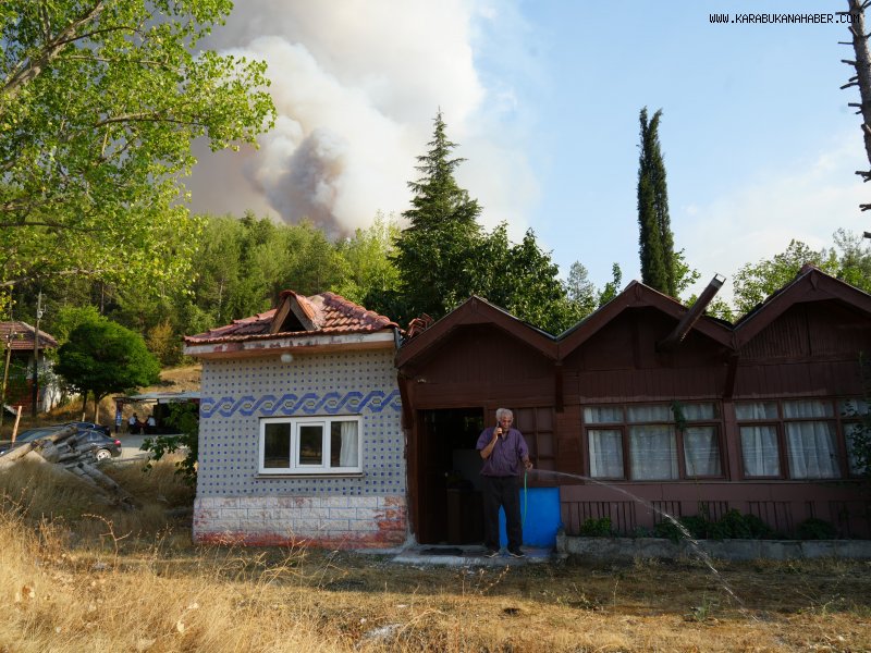 Karasu Mahallesi’nde yaşayan Suat Atalay isimli bir vatandaş ise yaklaşan orman yangınından evini korumak için bahçesindeki otları hortumla sulamaya çalıştı. Yangın haberini duyar duymaz evine geldiğini ve önlem almaya çalıştığını belirten Suat Atalay, "Ben Safranbolu’da yaşıyorum. Burada bahçem var. Haftada bir iki kez geliyoruz. Komşum arayıp yangın olduğunu söyledi. Hemen geldim. Yangın bize mesafeli ama yakın. Rüzgarın nereye geleceği belli değil. Biz de elimizde hortumla yangını söndürmek amaçlı değil de evin etrafını korumak için uğraşıyoruz" dedi.