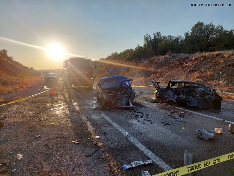Karabük’ün Eflani ilçesinde iki otomobilin kafa kafaya çarpışması sonucu araçlar alev aldı. Kazada 3 kişi yanarak hayatını kaybetti, 5 kişi yaralandı. Yaralılar hastanelere kaldırılırken, yol çift yönlü ulaşıma kapatıldı.
