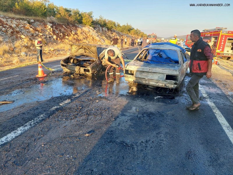 Kafa kafaya çarpışan iki otomobil alev aldı: 3 ölü, 5 yaralı