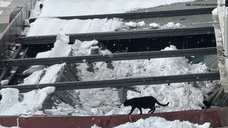 Karabük'te bir zincir marketin çatısı, kar birikintisinin ağırlığına dayanamayarak çöktü.