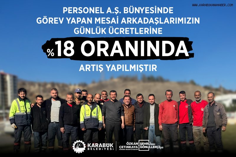 Karabük Belediyesi, Personel A.Ş. bünyesinde çalışan işçilerin günlük ücretlerine %18 oranında zam yaptı. Belediye, bu artışın çalışanların enflasyona karşı korunması ve yaşam standartlarının devamı için yapıldığını açıkladı.