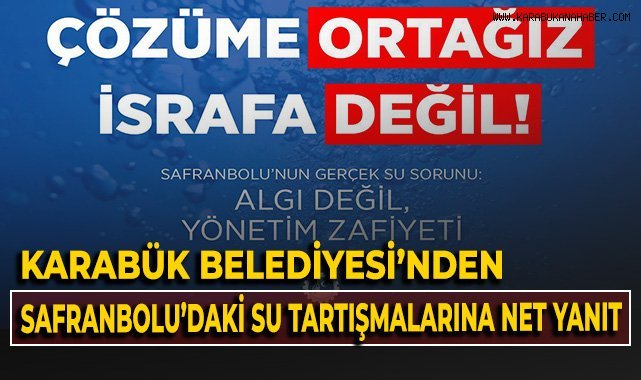 4. DSİ, Karabük ve Safranbolu’nun katılımıyla oluşturulacak teknik komisyonun ölçümlerine katkı sağlayın.“Karabük Halkının Hakkını Koruruz”Karabük Belediyesi, bölgesel dayanışmaya her zaman açık olunduğunu vurgularken, “sorumluluğun paylaşılmadığı yerde, kaynak paylaşımının adil olmayacağını” belirtti. Açıklamada şu ifadelere yer verildi:“Kendi şebekesinde %60 suyu kaybeden bir idarenin, şartsız ilave kaynak talebi Karabük halkının hakkına zarar verir. Gerçeklerin üzerini örtmeye çalışan manipülatif açıklamalar sorunun özünü gizleyemez.”“Çözüme Ortağız, İsrafa Değil”Karabük Belediyesi’nin çağrısı şu net mesajla tamamlandı:“Önce altyapınızı rehabilite edin, sonra talepte bulunun. Safranbolu Belediyesi, basın açıklamalarıyla değil yatırımla çözüm üretebilir. Karabük Belediyesi olarak su kaynaklarını bilim, hukuk ve adalet çerçevesinde yönetmeye ve tüm vatandaşlarımızın hakkını adil bir şekilde korumaya devam edeceğiz.”