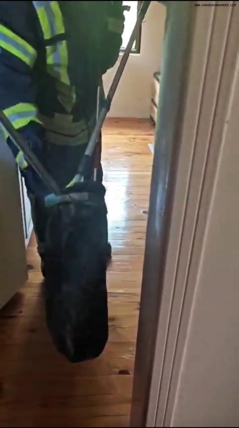 Karabük'ün Safranbolu ilçesinde bir eve giren yılan, itfaiye ekipleri tarafından yakalanarak doğaya bırakıldı.