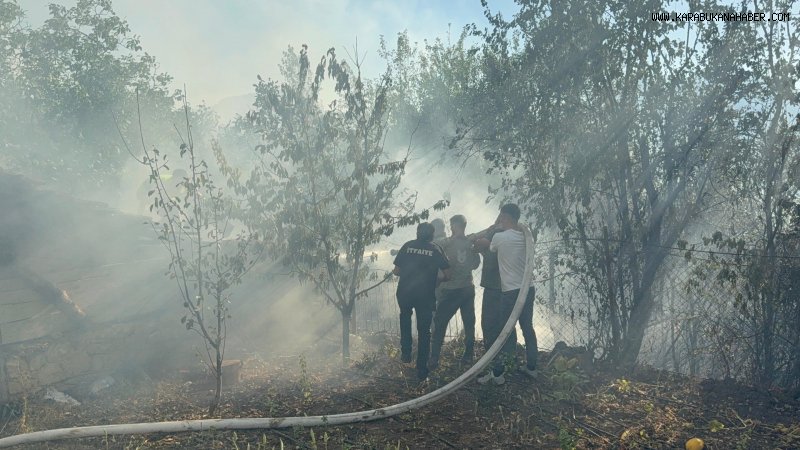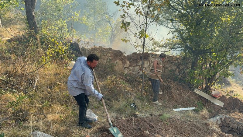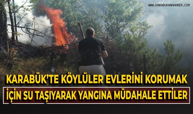 Karabük'te köylüler, evlerini korumak için su taşıyarak yangına müdahale etti