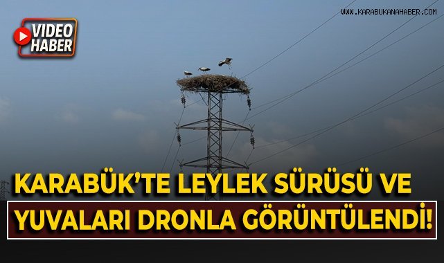 Karabük’te Soğanlı Çayı kıyısında bir arada bekleyen leylek sürüsü ile yüksek gerilim hattı direğine yapılan yuva dronla görüntülendi.