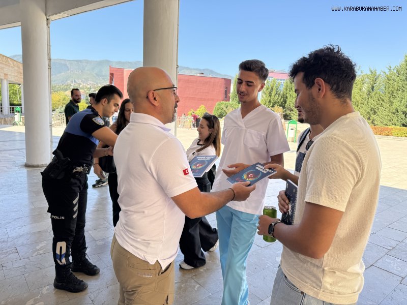 Karabük'te yeni eğitim-öğretim yılının başlaması dolayısıyla İl Emniyet Müdürlüğü ekipleri üniversite öğrencilerini, narkotik, terörle mücadele ve siber suçlarla mücadele konularında bilgilendirmelerde bulunuyor.