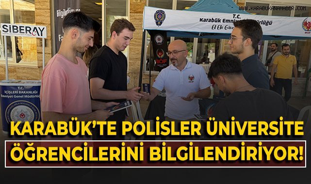 Karabük Üniversitesi'nde 2025-2026 akademik yılının başlamasıyla birlikte, İl Emniyet Müdürlüğü ekipleri üniversiteye yeni gelen ve eğitimine devam eden öğrencilere yönelik bilgilendirme çalışması gerçekleştirdi. Öğrencilerin güvenli bir şekilde eğitim hayatlarını sürdürmesi amacıyla düzenlenen etkinlikte, farklı birimlerden polisler kampüs içinde stant açarak öğrencilere bilgi verdi.