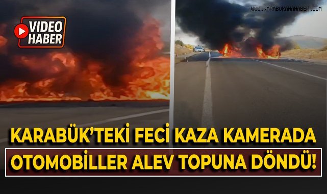 Karabük'teki feci kaza kamerada: Otomobilller alev topuna döndü
