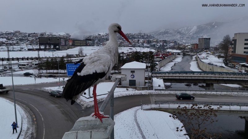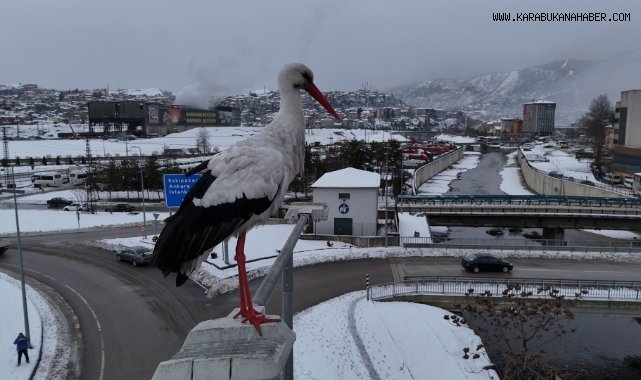 Karabük'te vatandaşlar tarafından "Demir" ismi verilen leylek, yaz ve kış demeden kentten ayrılmayarak ilgi odağı oldu.