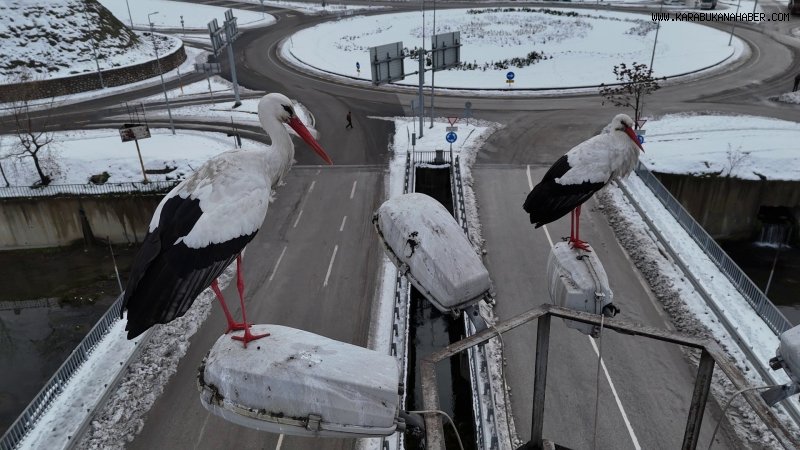 Kent merkezinde uzun süredir yaşamını sürdüren ve vatandaşların "Demir" adını verdiği leylek, göç dönemlerinde dahi Karabük'ü terk etmiyor, zaman zaman eşiyle birlikte görülüyor. Dronla görüntülenen leylek çifti, dinlenirken objektiflere yansıdı.