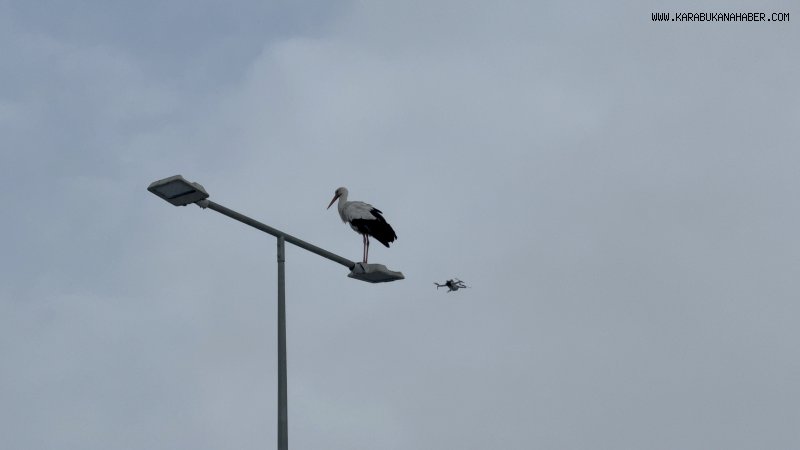 Karabük'ün simgesi haline gelen leylek dronla görüntülendi
