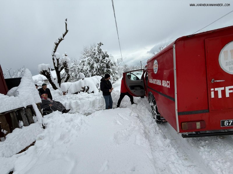 İhbar üzerine Kozlu Belediyesi İtfaiye Müdürlüğü ekipleri, arazi aracıyla bölgeye sevk edildi. Zorlu hava ve yol koşullarına rağmen köye ulaşan ekipler, yaşlı kadını evinden alarak güvenli şekilde araca nakletti. Köyden çıkarılan hasta, tedavisinin devamı için diyaliz merkezine ulaştırıldı.