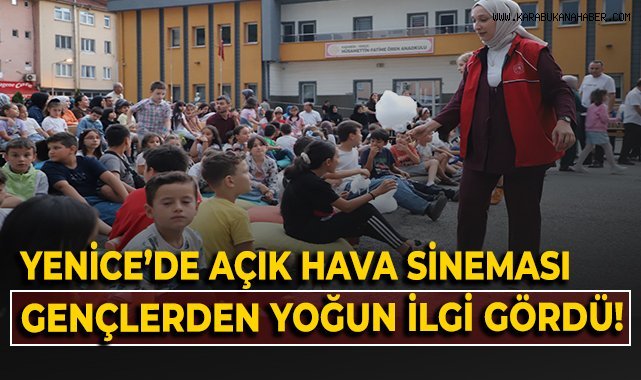 Yenice’de Açık Hava Sinemasına Yoğun İlgiKarabük Gençlik Merkezi, Yenice’de gençleri açık hava sinema keyfiyle buluşturdu.Yenice Ülkü İlkokulu bahçesinde düzenlenen Açık Hava Sinema Gecesi, yoğun katılımla gerçekleşti.Gençler, serin yaz akşamında yıldızlar altında film izlerken keyifli dakikalar yaşadı. Etkinliğe gösterilen yoğun ilgi, organizasyon ekibinin de yüzünü güldürdü.Sinema gecesi kapsamında katılımcılara patlamış mısır ve pamuk şekeri ikramı yapılırken, samimi atmosferiyle etkinlik hem eğlenceli anlara hem de yeni dostlukların kurulmasına vesile oldu.Veliler, etkinliğin düzenlenmesinde emeği geçen İlçe Müdürü Nejdet Kelez başta olmak üzere Ülkü İlköğretim Okul Müdürü Ferdi Kurt ve tüm ilçe kurum personellerine teşekkür ederek, çocukların yüzlerinde tebessüm oluşturan bu tür etkinliklerin devamını temenni etti.