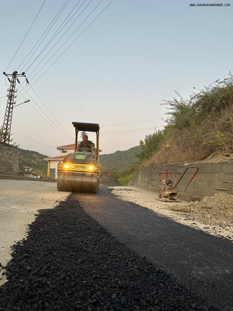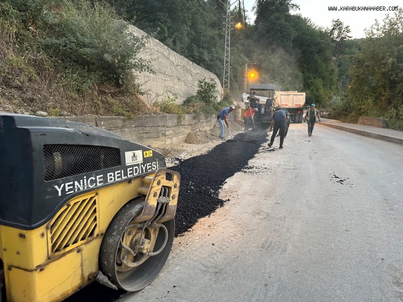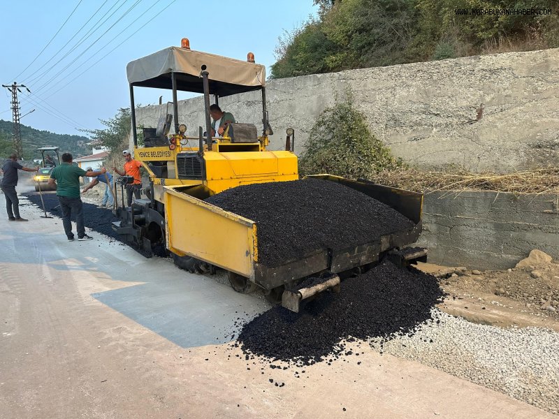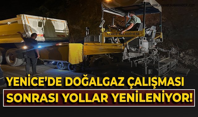 Karabük’ün Yenice ilçesinde, doğalgaz kazı çalışmaları nedeniyle bozulan yolların yenilenmesi için asfalt kaplama çalışmaları hız kesmeden sürüyor.