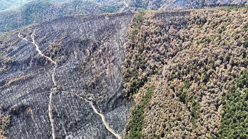 Karabük’te geçtiğimiz ay meydana gelen orman yangınlarının ardından binlerce dönüm yeşil alan zarar gördü. Havadan kaydedilen görüntülerde, canlı yeşilin yerini sararmış ağaçlar, kurumuş fidanlar ve kararmış topraklar aldı. Yangının doğada bıraktığı tahribat gözler önüne serildi.