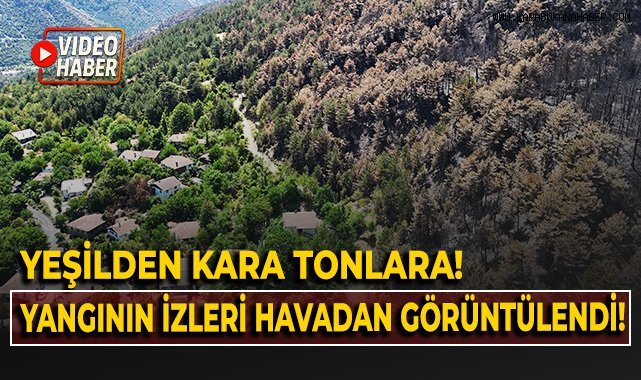 Yeşilden kara tonlara, yangının izleri havadan görüntülendi