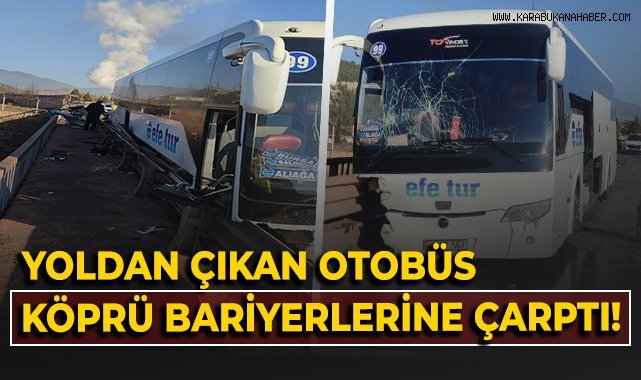 Karabük’te Efe Tur firmasına ait yolcu otobüsü köprü bariyerlerine çarptı. Kazada yolcu H.Y. yaralanarak hastaneye kaldırıldı. Hayati tehlikesinin olmadığı bildirildi. Olayla ilgili inceleme sürüyor.